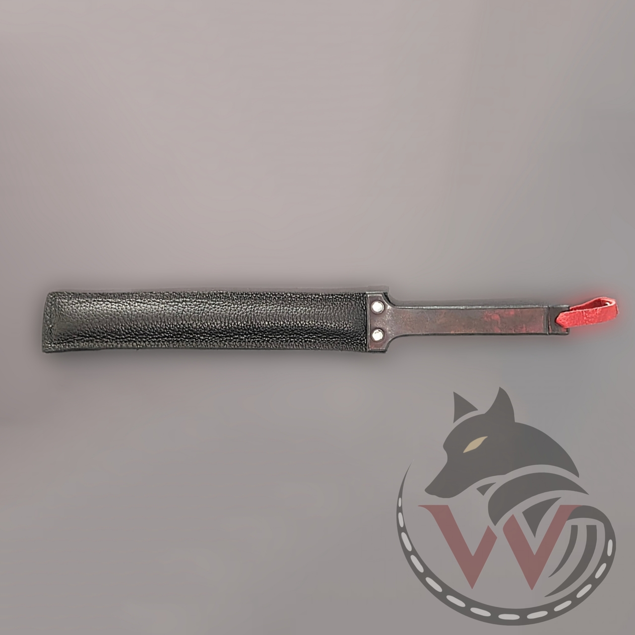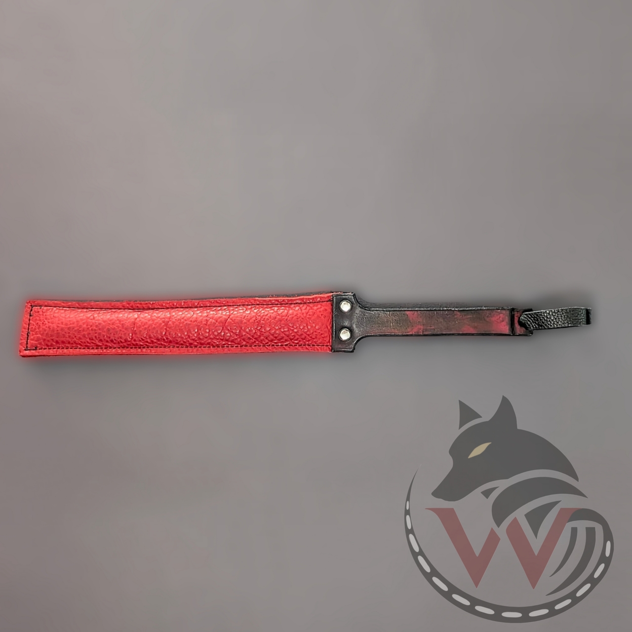 A toy made for beginners, warmups and those who are extra sensitive. It is a sleeve of bison leather filled with cotton batting to give it some weight and finished with a all leather handle.
